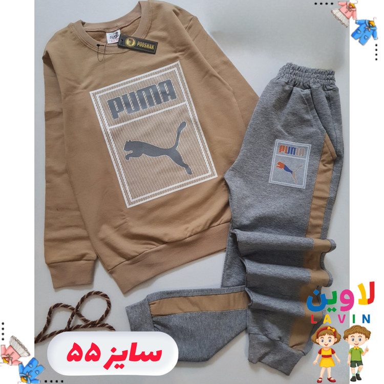بلوز شلوار پسرانه طرح پوما رنگ کرم سایز۵۵