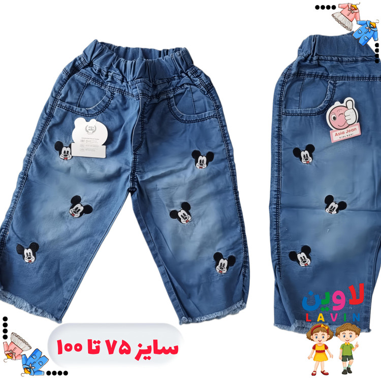 شلوارک لی دخترانه طرح میکی موس جنس لی کاغذی از سایز ۷۵ تا ۱۰۰