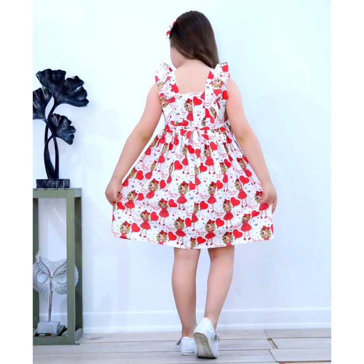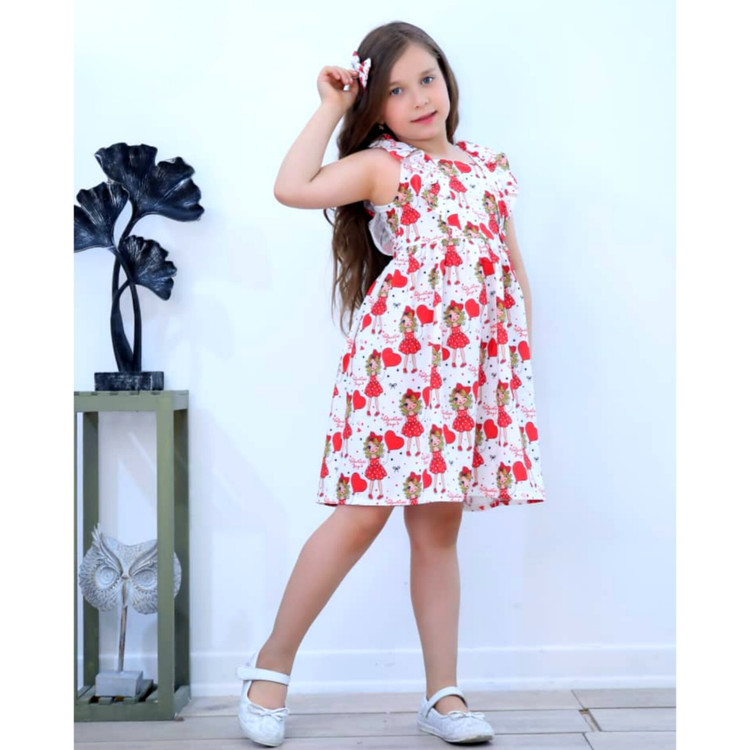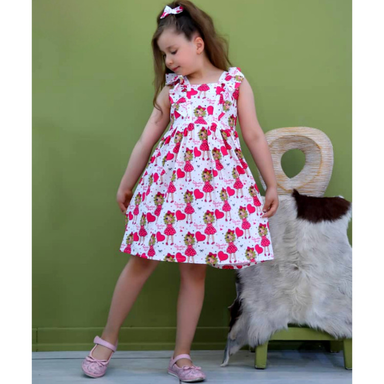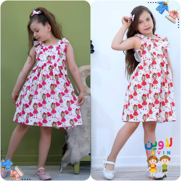 پیراهن دخترانه طرح فانتزی تابستانی در ۲ رنگ قرمز و سرخابی از ۳ تا ۸ سال جنس نخ ویسکوز