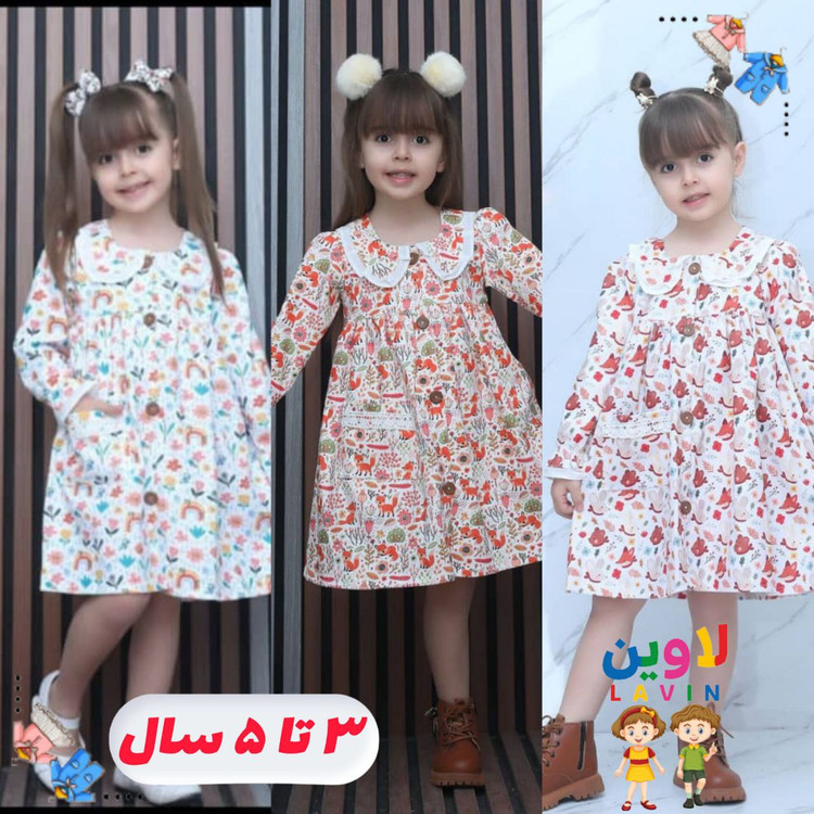پیراهن دخترانه طرح فانتزی جنس کبریتی ۳ تا ۵ سال