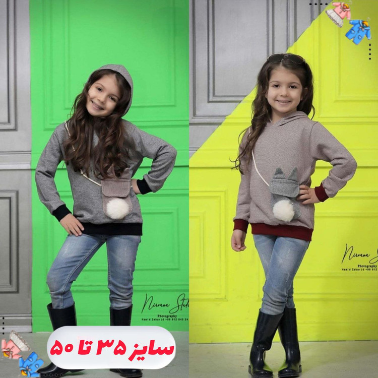 هودی دخترانه در ۲ رنگ جنس ترک و لمه از سایز ۳۵ تا ۵۰