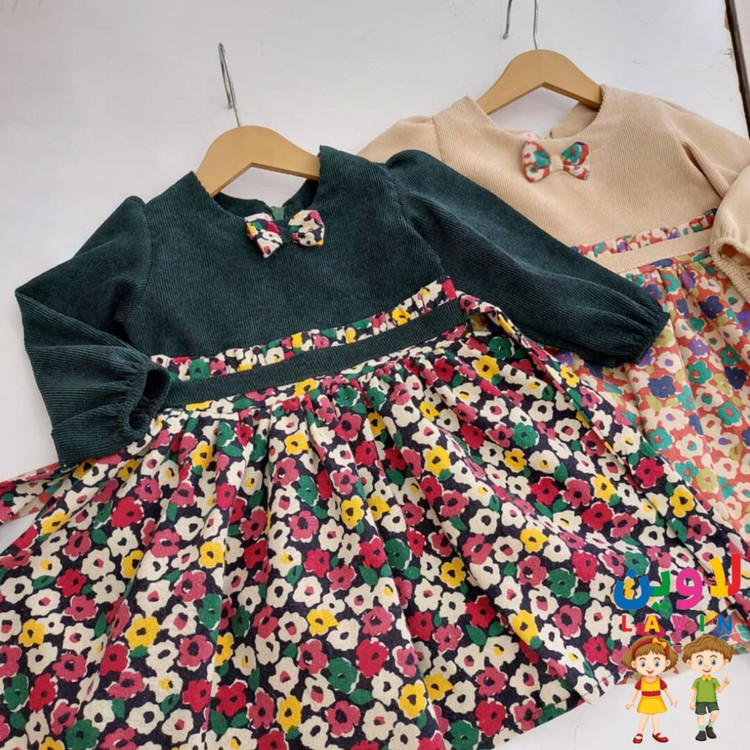 پیراهن دخترانه از ۲ تا ۹ سال در دو رنگ کرم و یشمی جنس کار کبریتی و لنین درجه یک